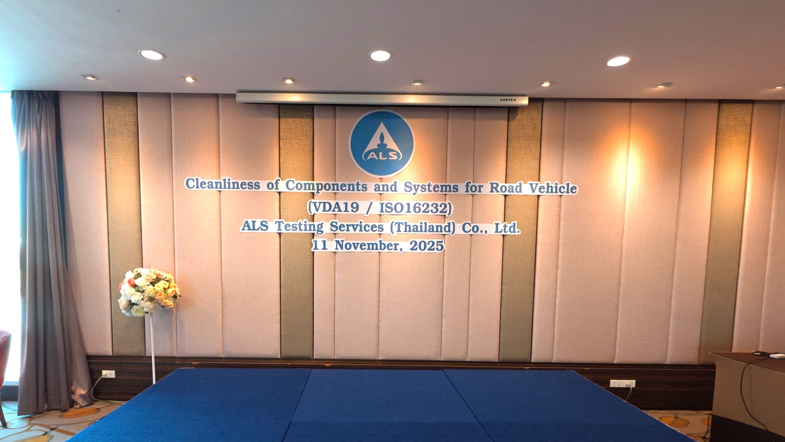บริษัท เอแอลเอส เทสติ้ง เซอร์วิสเซส (ประเทศไทย) จำกัด ได้จัดสัมมนาในหัวข้อการทดสอบอนุภาคสำหรับอุตสาหกรรมยานยนต์และชิ้นส่วนยานยนต์ (Cleanliness of Components and Systems for Road Vehicle VDA19/ISO16232) ให้กับลูกค้ากลุ่มอุตสากรรมยานยนต์และชิ้นส่วนยานยนต์ ณ ห้องชบา โรงแรมกรุงศรีริเวอร์ จังหวัดพระนครศรีอยุธยา โดยวิทยากรที่มากประสบการณ์ด้านห้องปฏิบัติการทั้ง 2 ท่าน