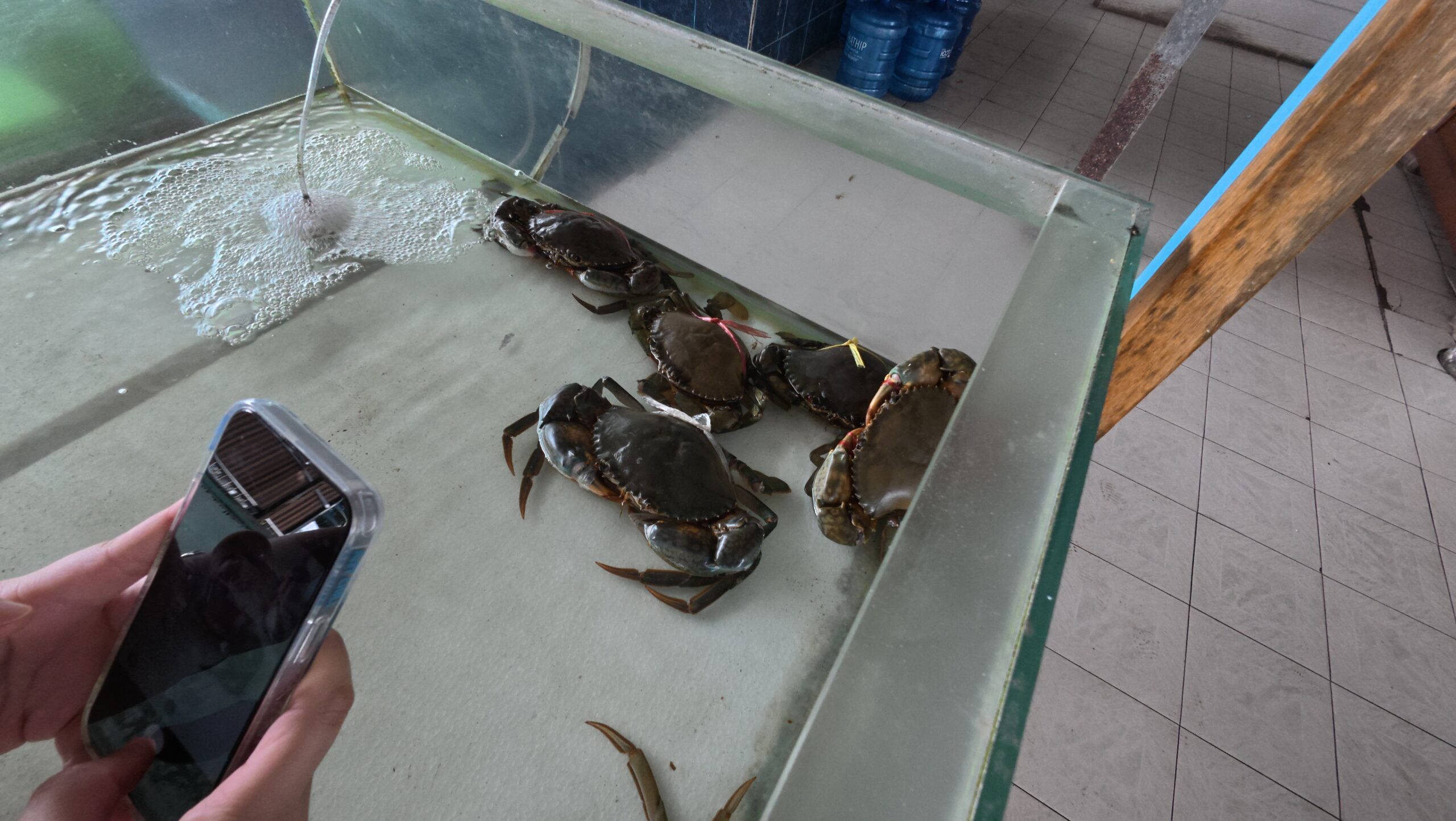 by releasing blue crabs and baby blue crabs back into the sea at the Blue Crab Bank, Ang Sila District, Chonburi Province, on October 18, 2025.